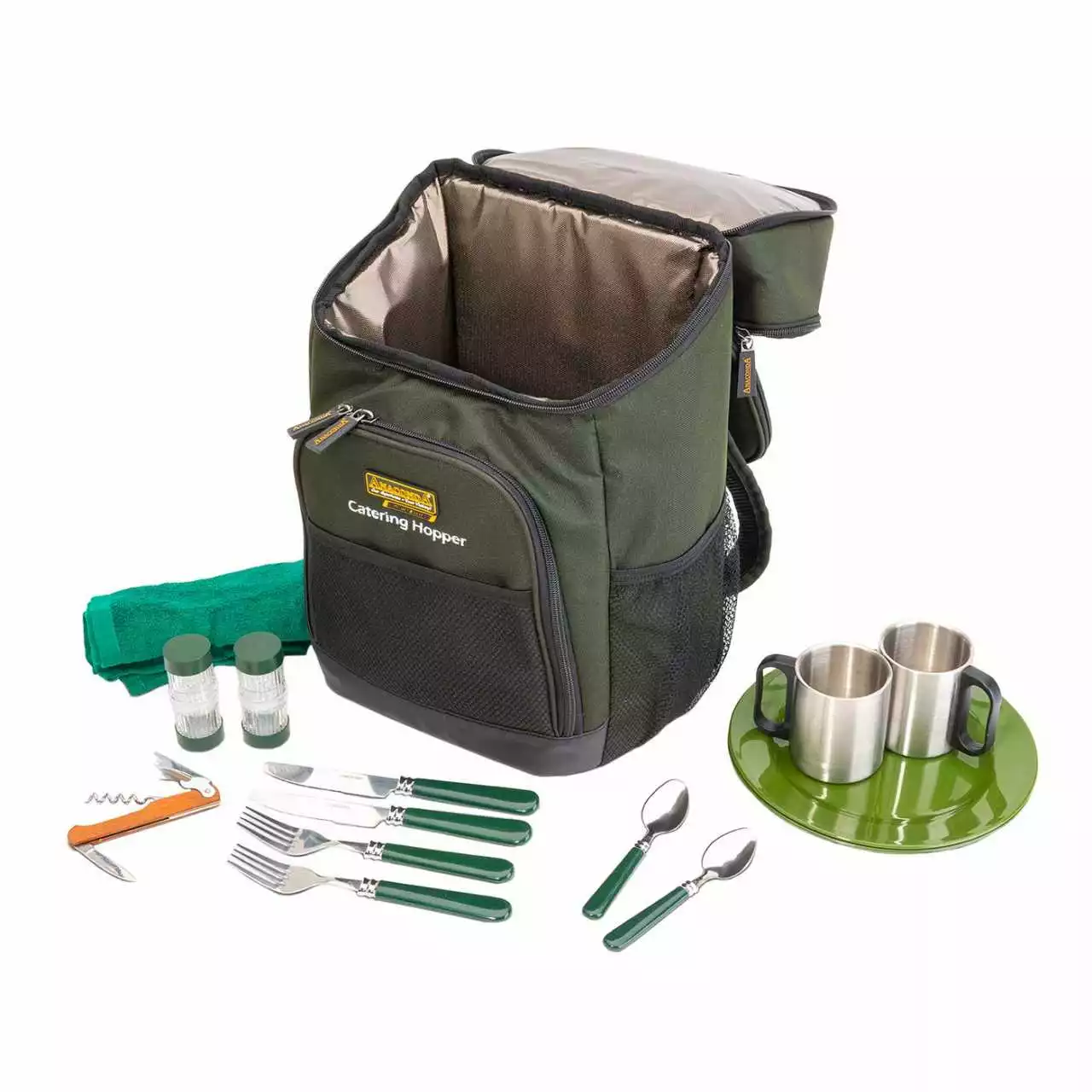 Bei dem Catering Hopper von Anaconda bist du bestens auf eine kleine Pause vorbereitet. Egal ob du einen kleinen Snack zu dir nehmen willst, einen Wein trinken, wie auch eine Tee- oder Kaffeepause dieser Rucksack bietet dir das notwendige Zubehör an.