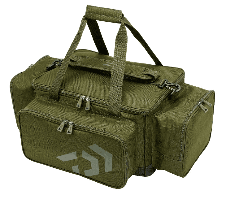 Diese große Daiwa Black Widow Low Level Carryall-Tasche bietet viel Stauraum für Zubehör, Bekleidung, etc. Mit zwei großen seitlichen Aufsetztaschen und einer extra großen Fronttasche für Banksticks, Bissanzeiger, etc. Der PVC-Boden verhindert das Eindringen von Feuchtigkeit von unten. Die Tasche ist so konzipiert, dass sie problemlos unter der Liege verstaut werden kann. Ausgestattet mit gepolstertem Schultergurt und Tragegriffen.