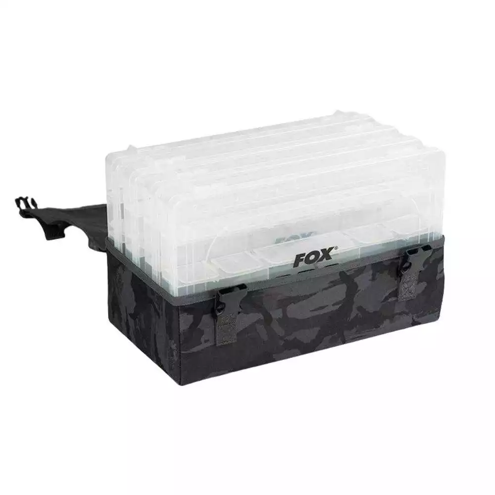 Die Tasche ist aus hochwertigem Stoff im Fox Rage Camouflagedesign, mit einem angenehm zu haltenden EVA-Tragegriff. Durch öffnen der zwei Clips ist der Zugriff auf die Boxen sofort gegeben.