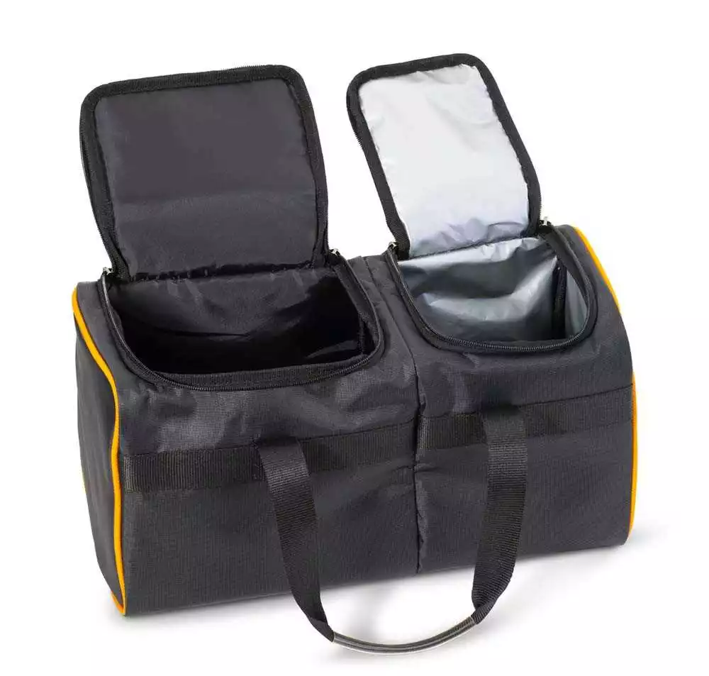 In zwei Abteile aufgeteilte kleine Tasche. Ein Abteil ist mit Thermoisolierung versehen, um z.B. Köder gekühlt ans Wasser zu bringen. Auf der anderen Seite bietet sich Platz für viele andere wichtige Artikel. Tragegriffe sorgen für einen einfachen Transport.