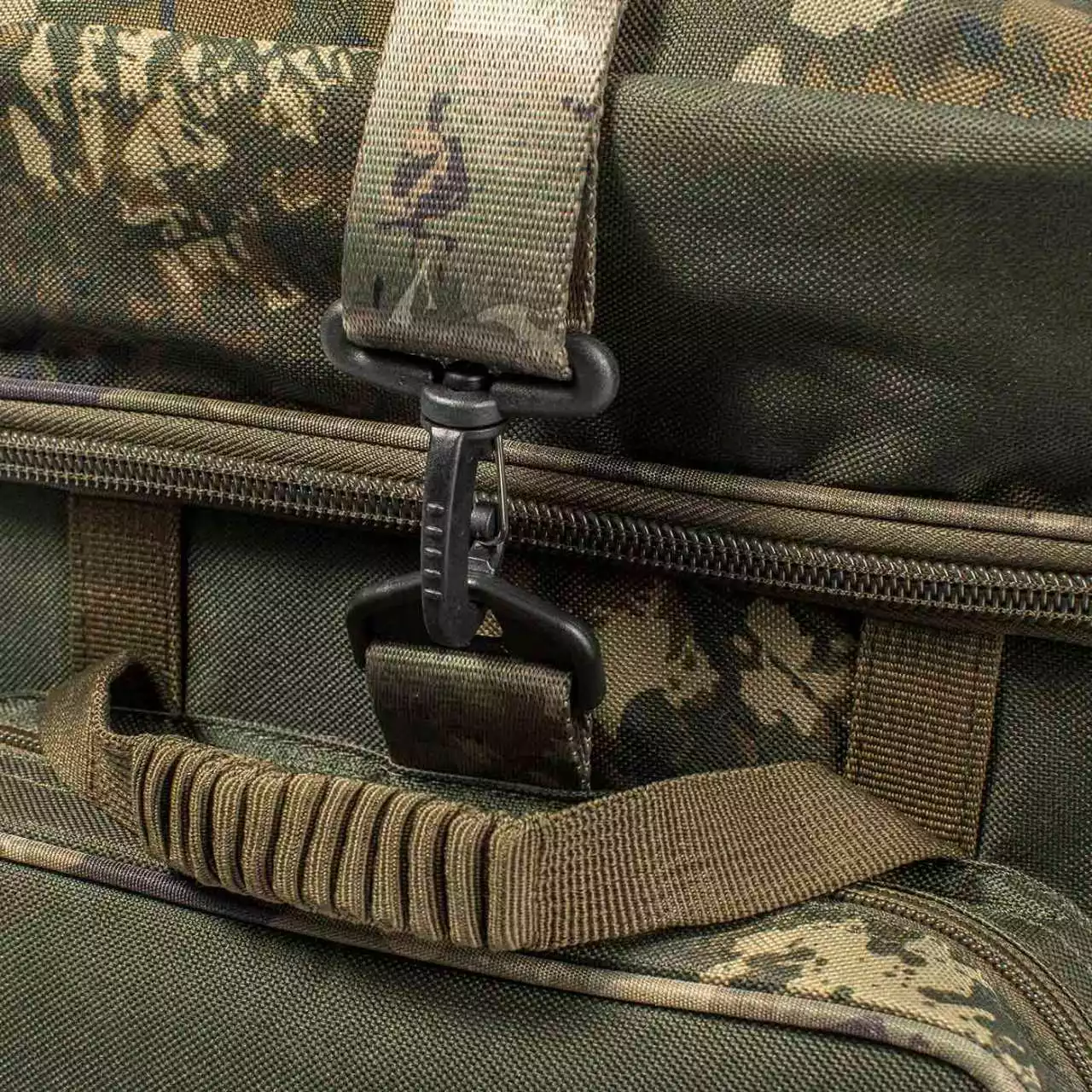 Der Subterfuge High Protect Large Carryall hat ein mit Reißverschluss verschließbares leicht zugängliches Fach für Tackle Boxen. Zusätzlich bietet die Tasche dir zwei verschließbare Seitentaschen und zwei interne Netztaschen mit Reißverschluss. Damit bietet er dir enorm viel Platz und mit dem Barrow-freundlichen Design ist er perfekt für den Karpfenangler konstruiert, der immer gut organisiert ist und gerne längere Angelsessions macht. Außerdem lassen sich die „Subterfuge High-Protect“-Taschen gut übereinanderstapeln, weil sie ineinanderpassende Vertiefungen haben, das sogenannte „Interlocking-System“. Damit hast du genügend Stauraum für einen einwöchigen Aufenthalt, im In- oder Ausland, ohne dabei viel Raum im Inneren eines Bivies zu beanspruchen.