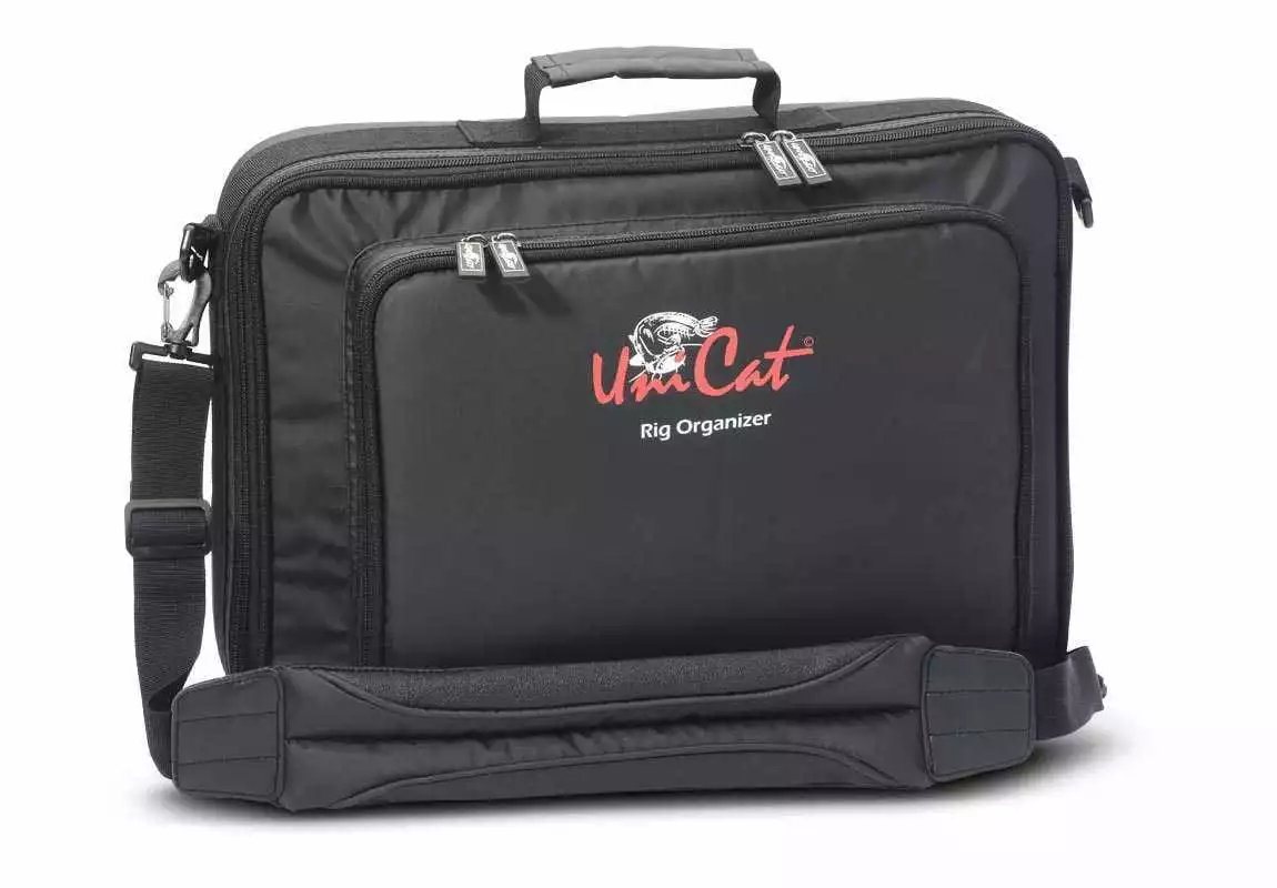 Im Hauptfach des Uni Cat Rig Organizers befindet sich ein Board, das zum Aufwickeln der verschiedenen Vorfächer einlädt. Vorne und hinten sind zwei weitere Taschen aufgesetzt, in denen massenweise Zubehör verstaut werden kann.